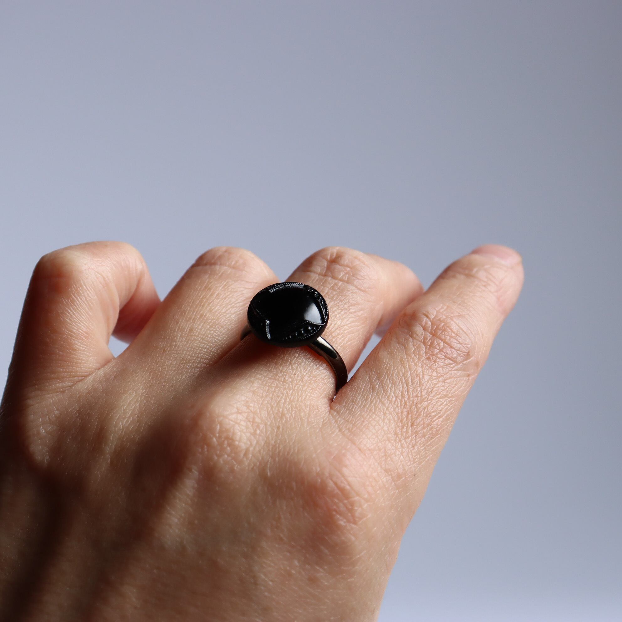 艶やかな黒が静かに光を宿す、クラシカルで美しい佇まいのボタン。