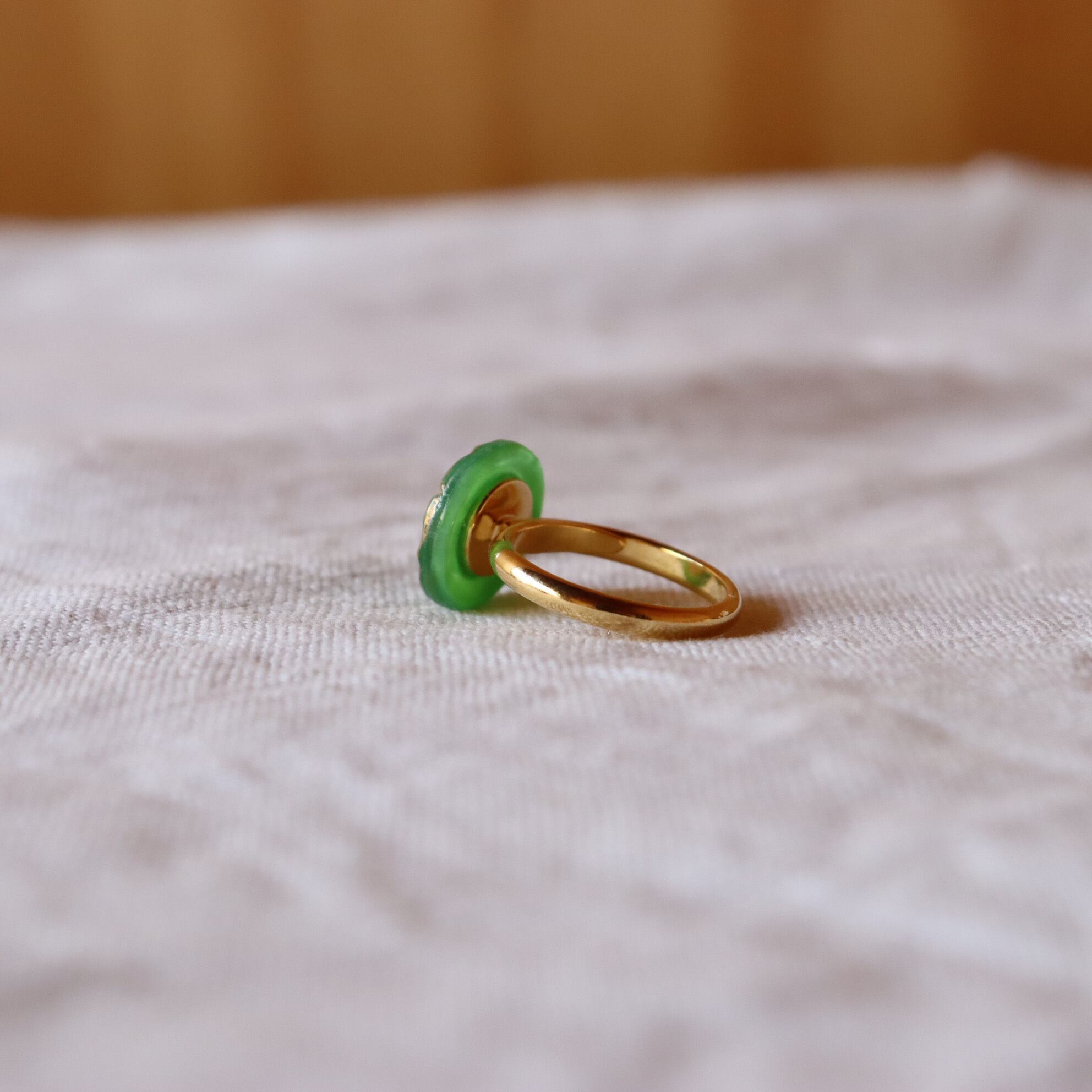 新緑の様な美しい緑のボタンリング