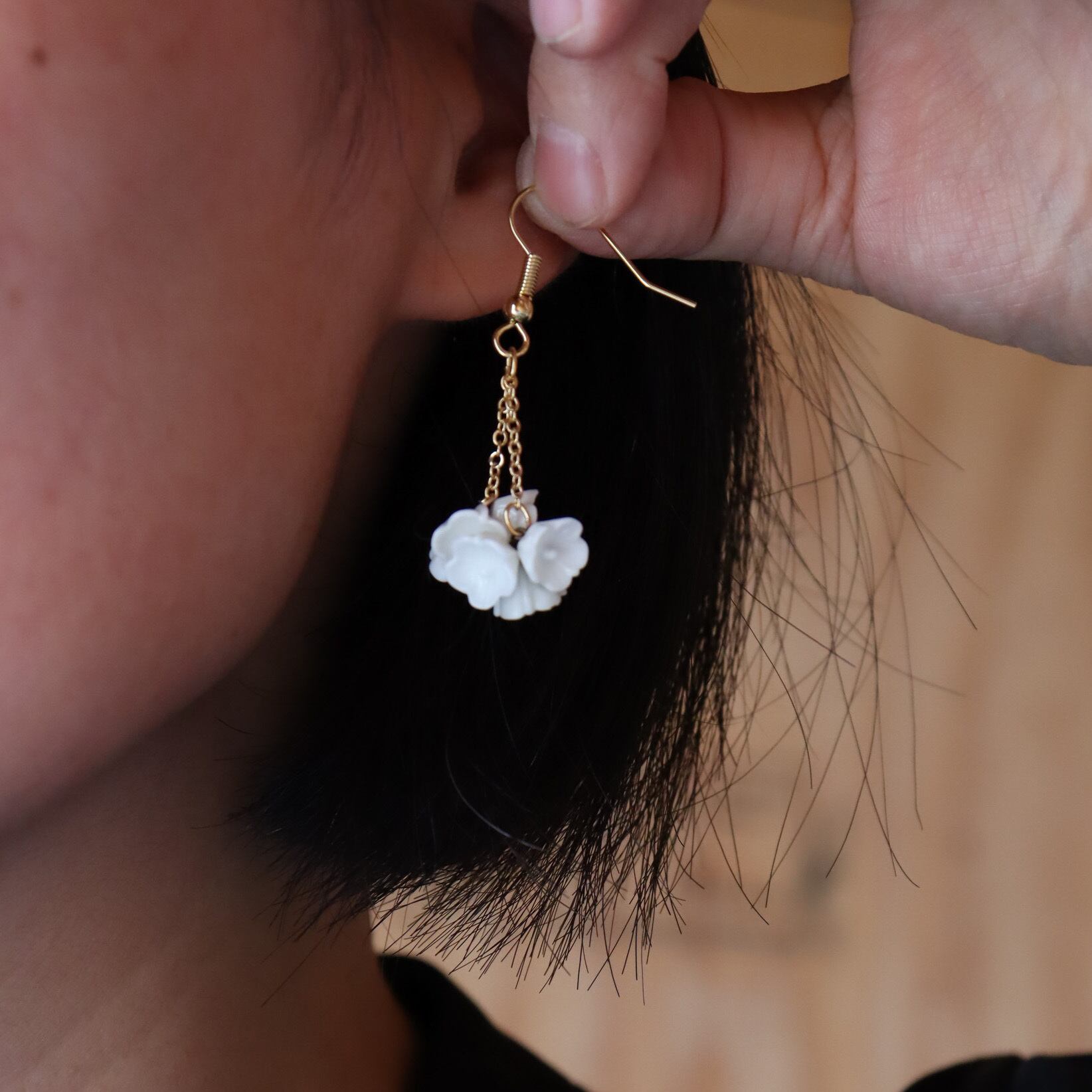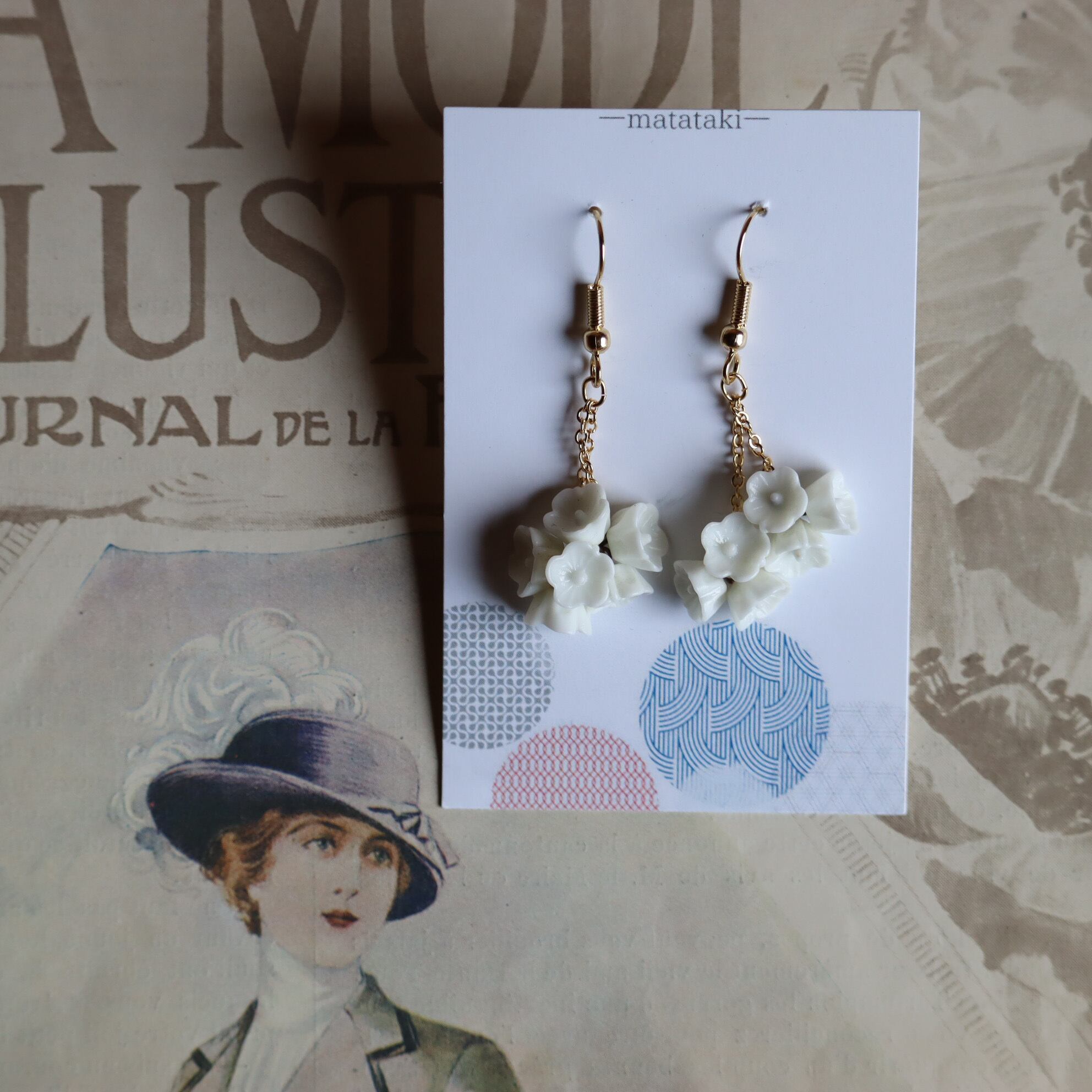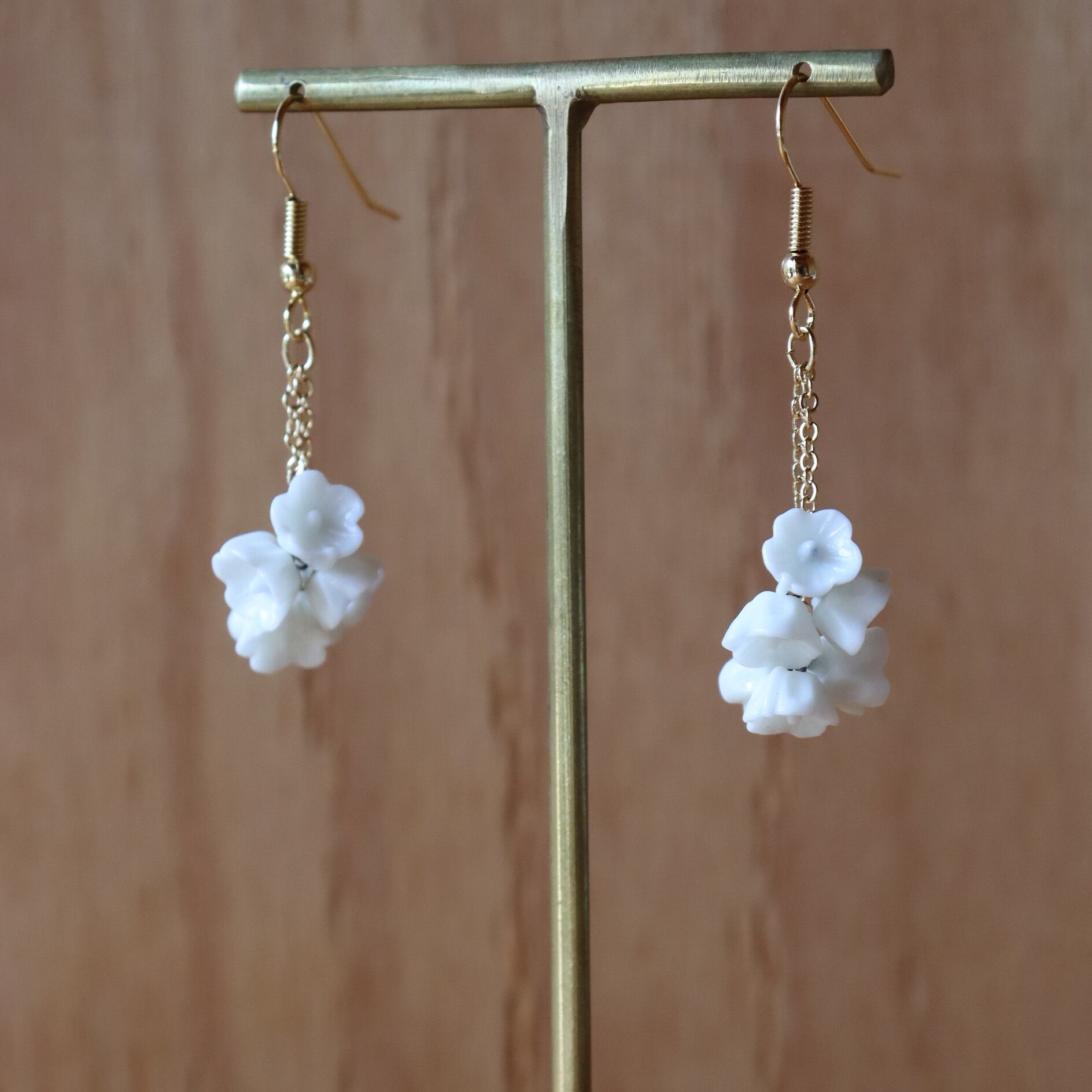 【thank you sold】【ピアス又はイヤリング】 ゆらゆら 花束 白