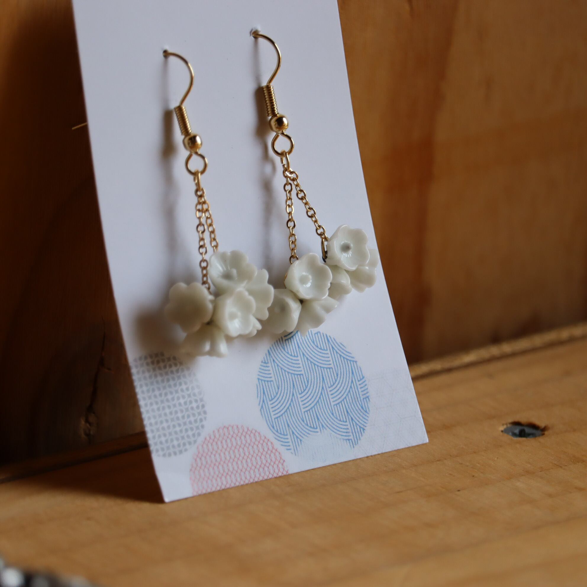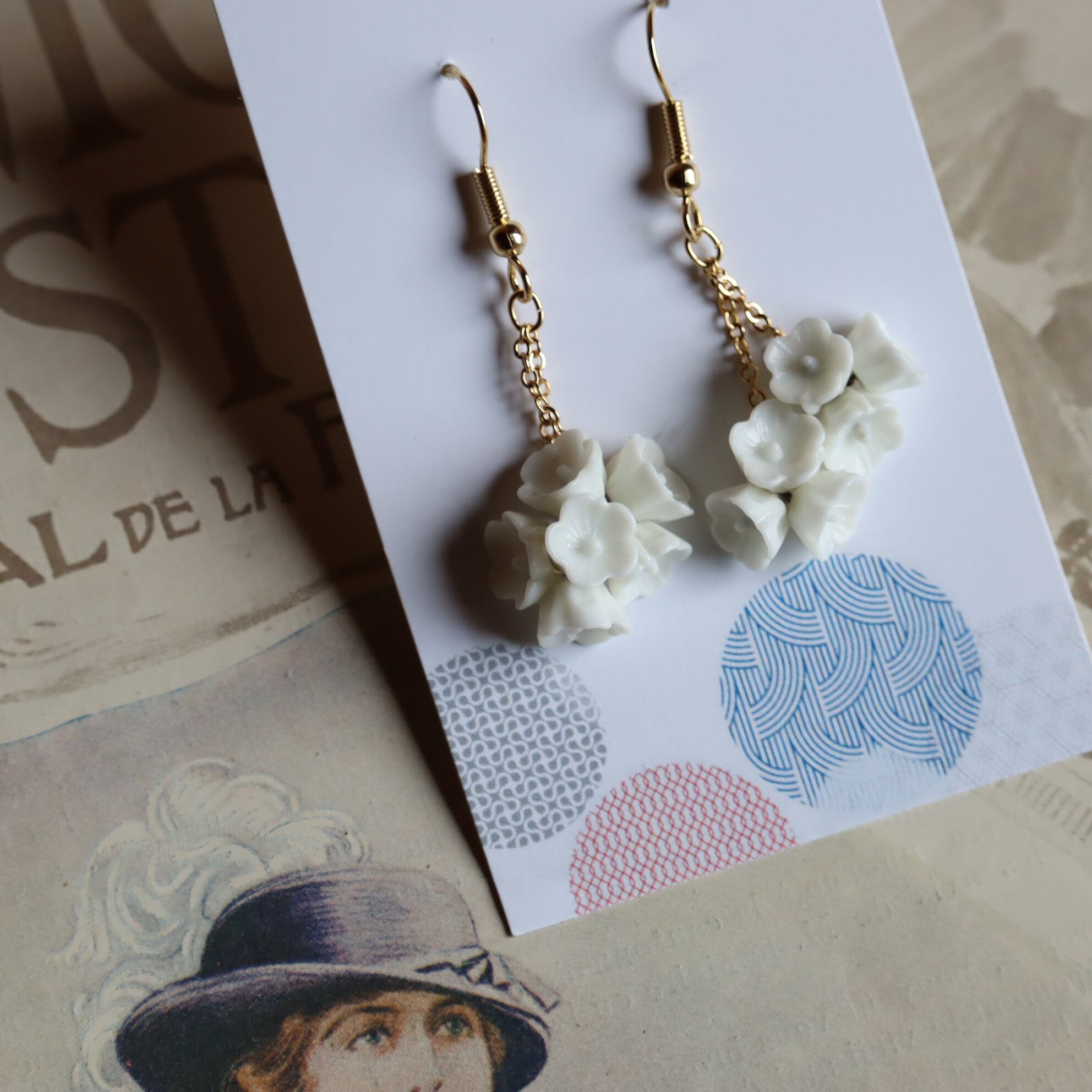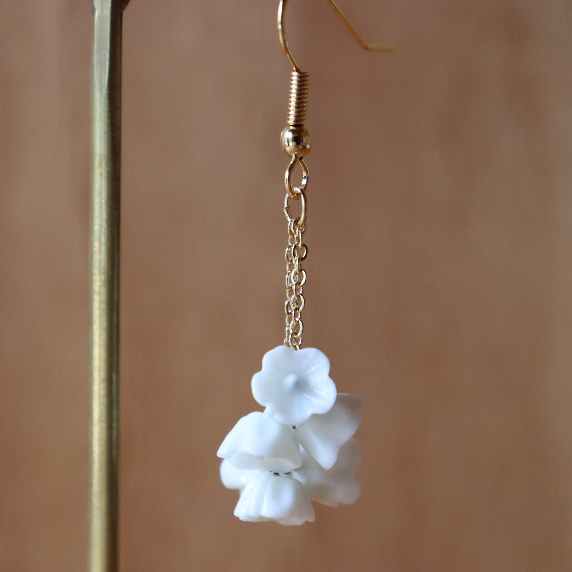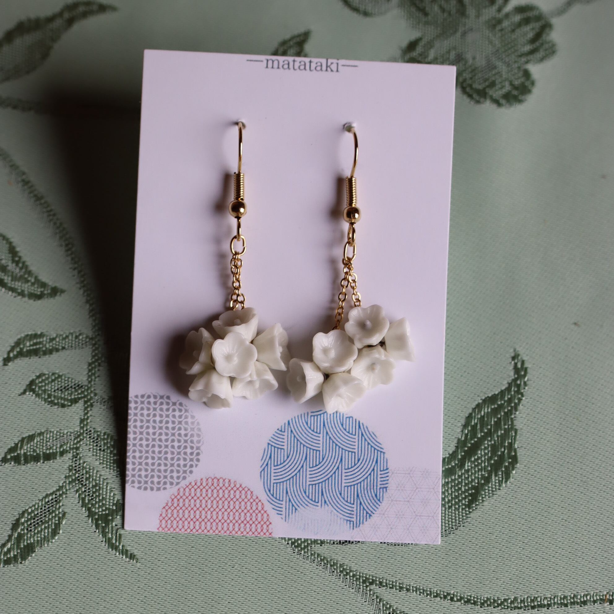 【thank you sold】【ピアス又はイヤリング】 ゆらゆら 花束 白