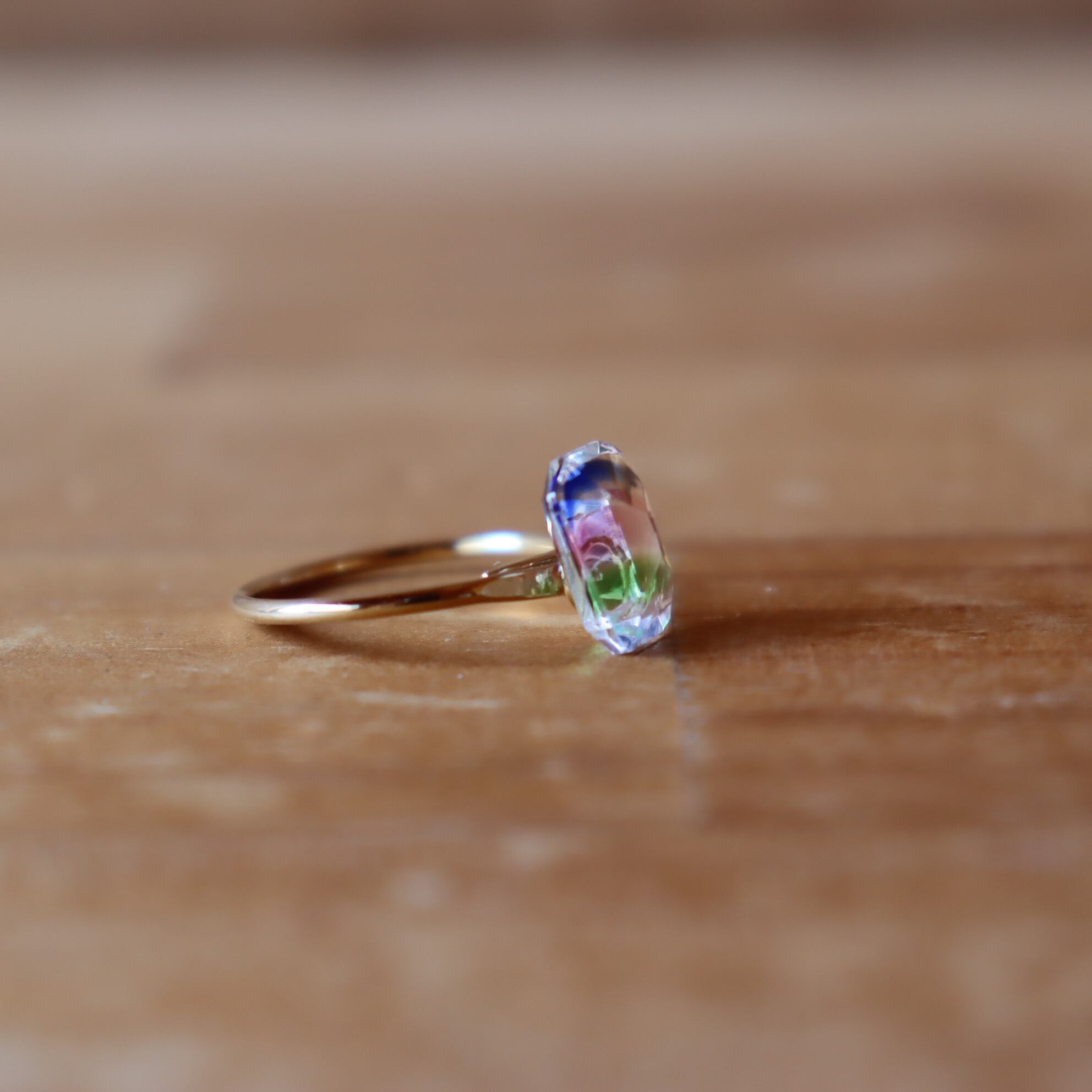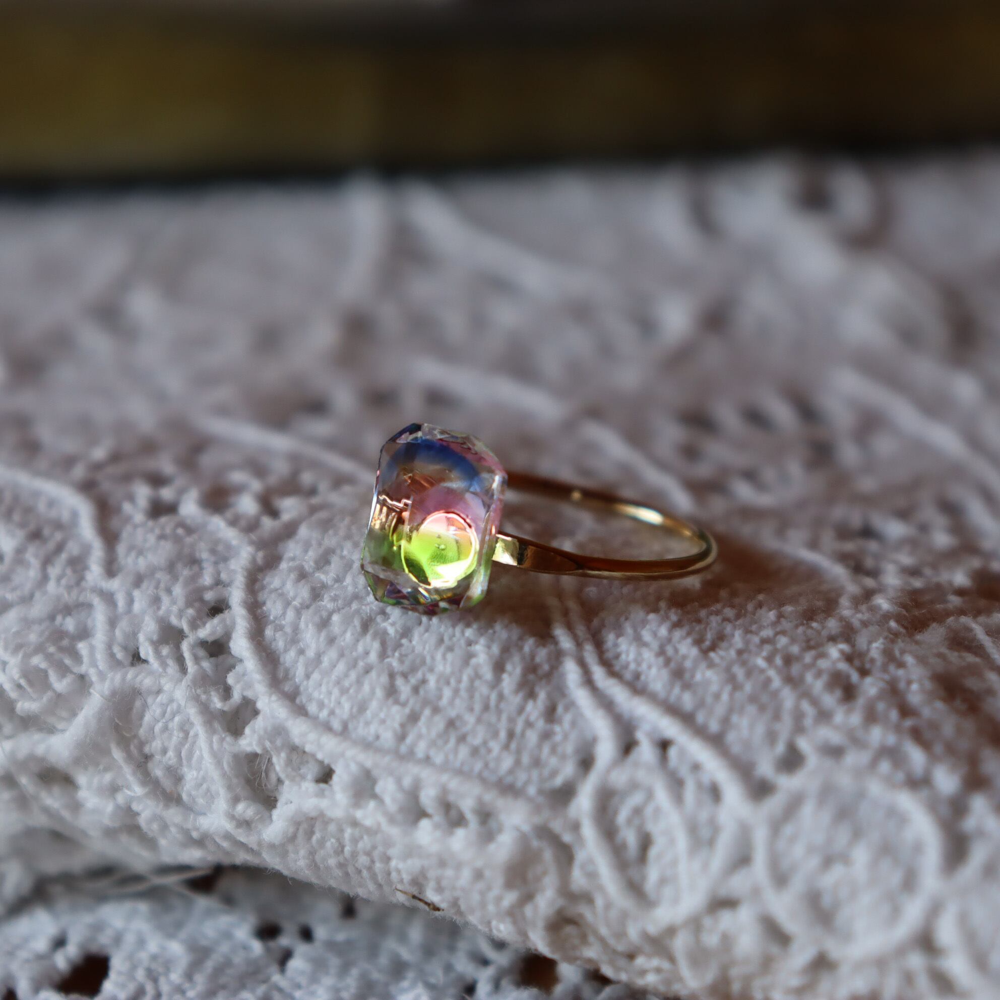 アイリスガラスとは、ガラスの中に小さな虹を閉じ込めたような幻想的なガラスです。