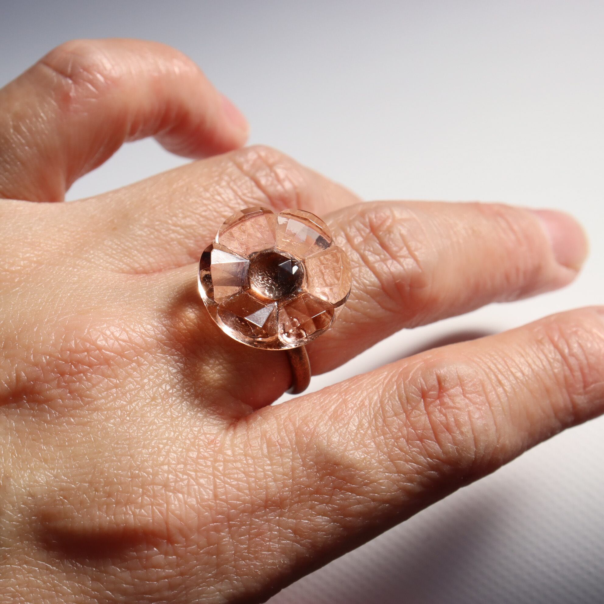 中心はぷくっと膨らんでおり、その周りを立体的なガラスの花びらが囲っています。