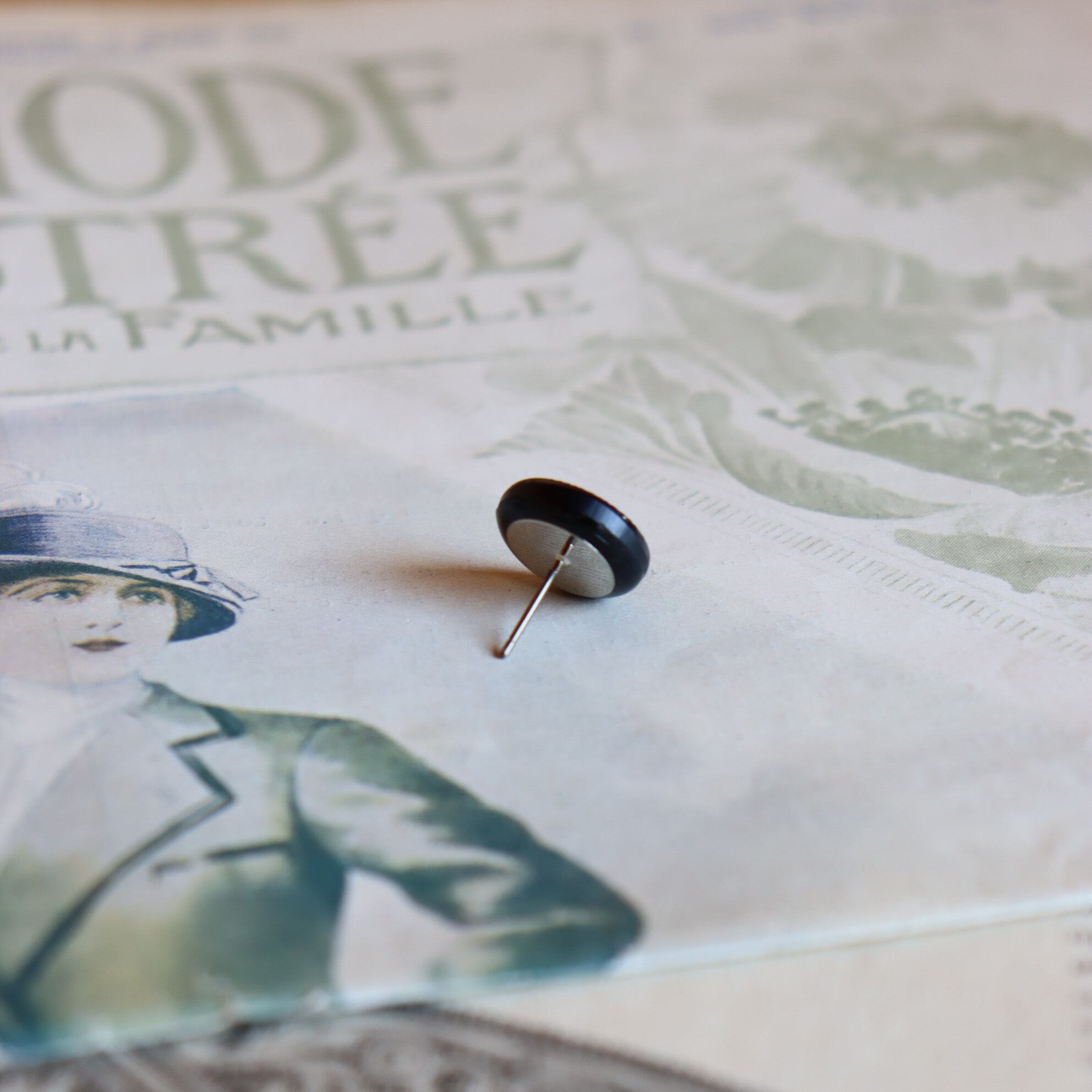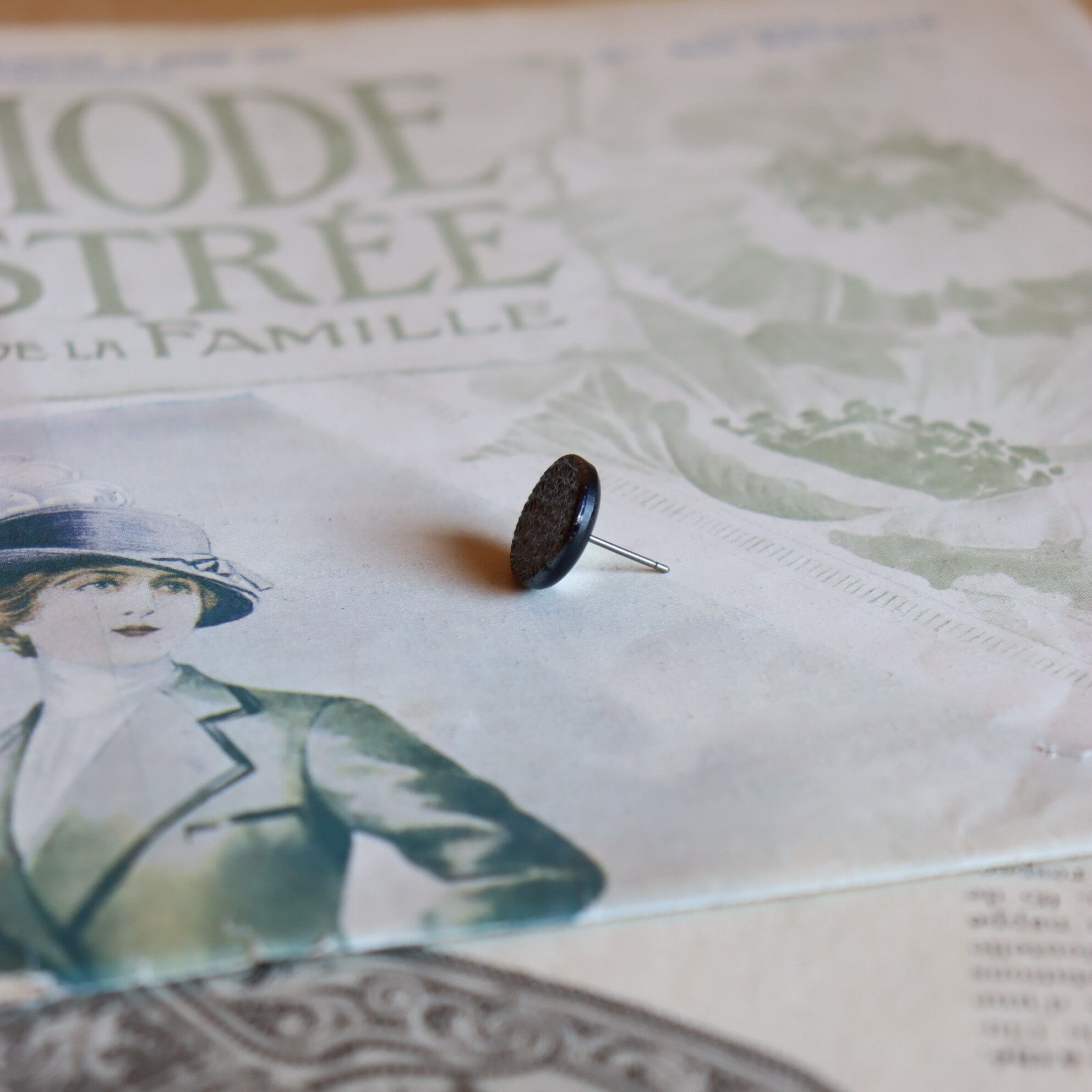 ボタンの表面は光が当たるとキラキラと光るようにうっすらとオーロラコーティングが