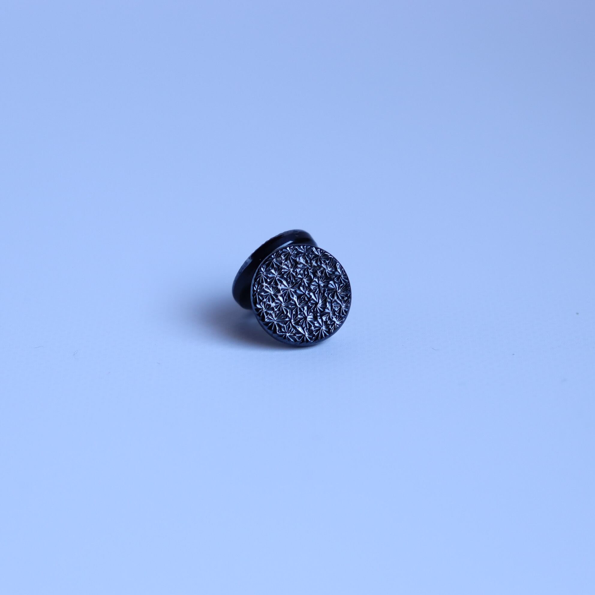 漆黒のボタンの表面に細かく掘り込まれた「麻の葉模様」の様な