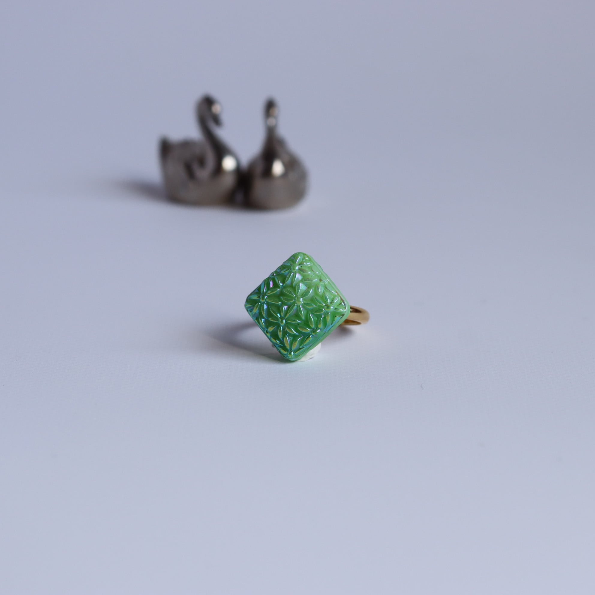 そのボタンを、ダイヤ型に見えるよう角度をつけてセッティング。